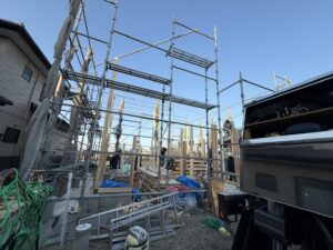 本日N様邸上棟です!おめでとうございます! スタッフブログ X Facebook はてブ Pocket LINE コピー 2026.01.13 スタッフブログ 2026年1月快晴の中、上棟が始まりました!! 磐田市にまたスキップフロアー4層建ての住まい「ALLen」誕生します!! N様の暮らしに合わせてカスタマイズしたBINO「ALLen」とても素敵な住まいになりそうです!!ワクワクしますね。 AM8時から上棟がスタートしています。随時ブログでアップしていきますね。N様本日は誠におめでとうございます。