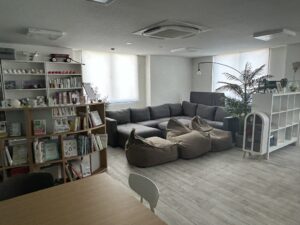 3階の休憩室はヨギボーや漫画や書籍が並んでいてゆっくり寛げるスペースになっていました。