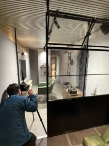オープン前にカメラマンさんに室内の写真など撮って頂きました!グレーとブラックを基調としてアクセントに木材を使用した店舗です。