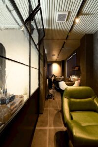 ↑受付の待合とカウンター。その横の照明が滅茶苦茶カッコいいです。S様の持ち込みの照明です。